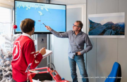 compétences informatiques, mais également de bonnes notions en météo, sachant que l’on transmet des bulletins quotidiens aux coureurs. Il faut être capable de juger de situations compliquées et dépressionnaires, même si on est épaulé par un météorologue professionnel. En résumé, il faut être polyvalent et avoir un bon sens maritime pour pouvoir prendre rapidement les bonnes décisions en cas de difficultés majeures et être prêt pour toutes les éventualités.